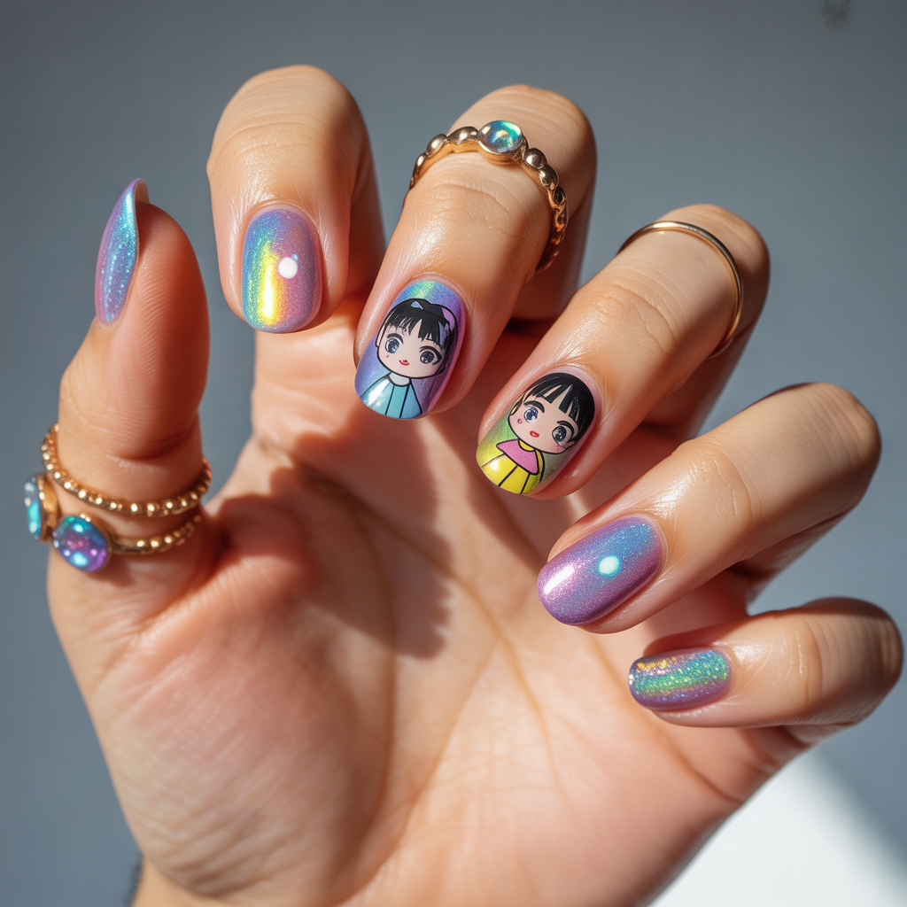Anime-inspired nails blend cuteness and craftsmanship. They work for short nails and long, gel and regular polish, and can be as subtle as a tiny chibi accent or as full-on as a hand-painted heroine across all ten fingers. These designs tap into cosplay manicures, otaku culture aesthetics, and seasonal nail trends—making them versatile enough for street style or a themed photoshoot.