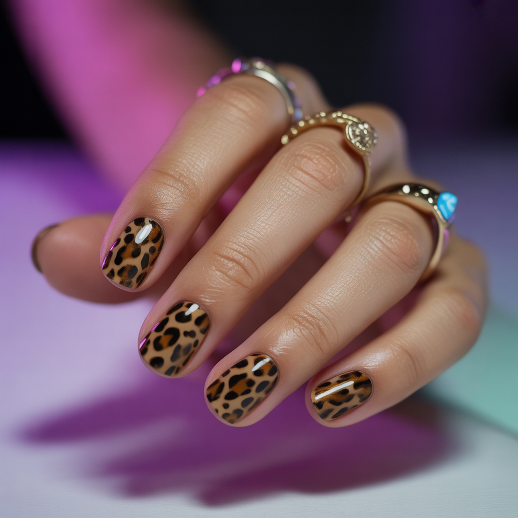 - Makeup: Clean base, neutral eyeshadow, light mascara. Choose a single accent cheetah nail or a muted beige base for subtle sophistication.