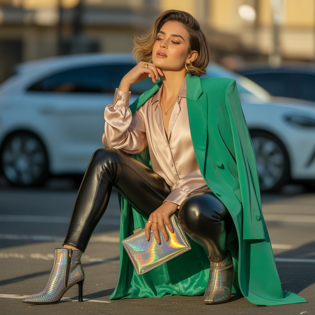 - Outfit idea: Faux leather leggings + asymmetrical blouse + strappy heels + statement earrings. Layer with a tailored coat for instant drama.