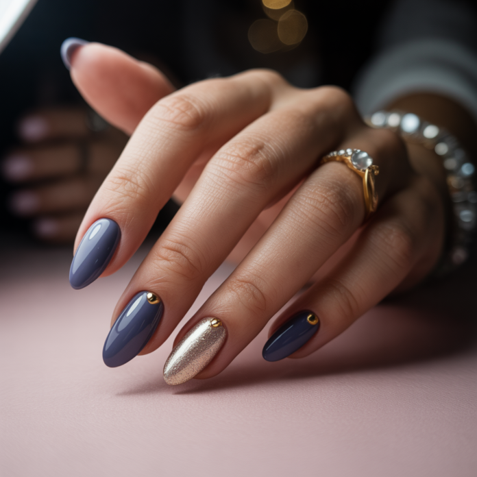 - Workwear: Navy blazer, silk blouse, tailored trousers, nude nails or a soft taupe for a professional polish.