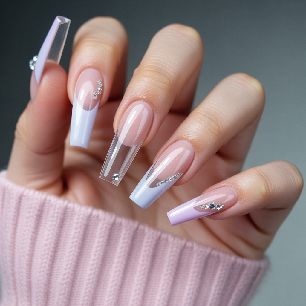 Not all clear coffin nails are the same. Long, sculpted acrylics read high-fashion; shorter, rounded coffin tips feel modern and practical. Consider these options:
