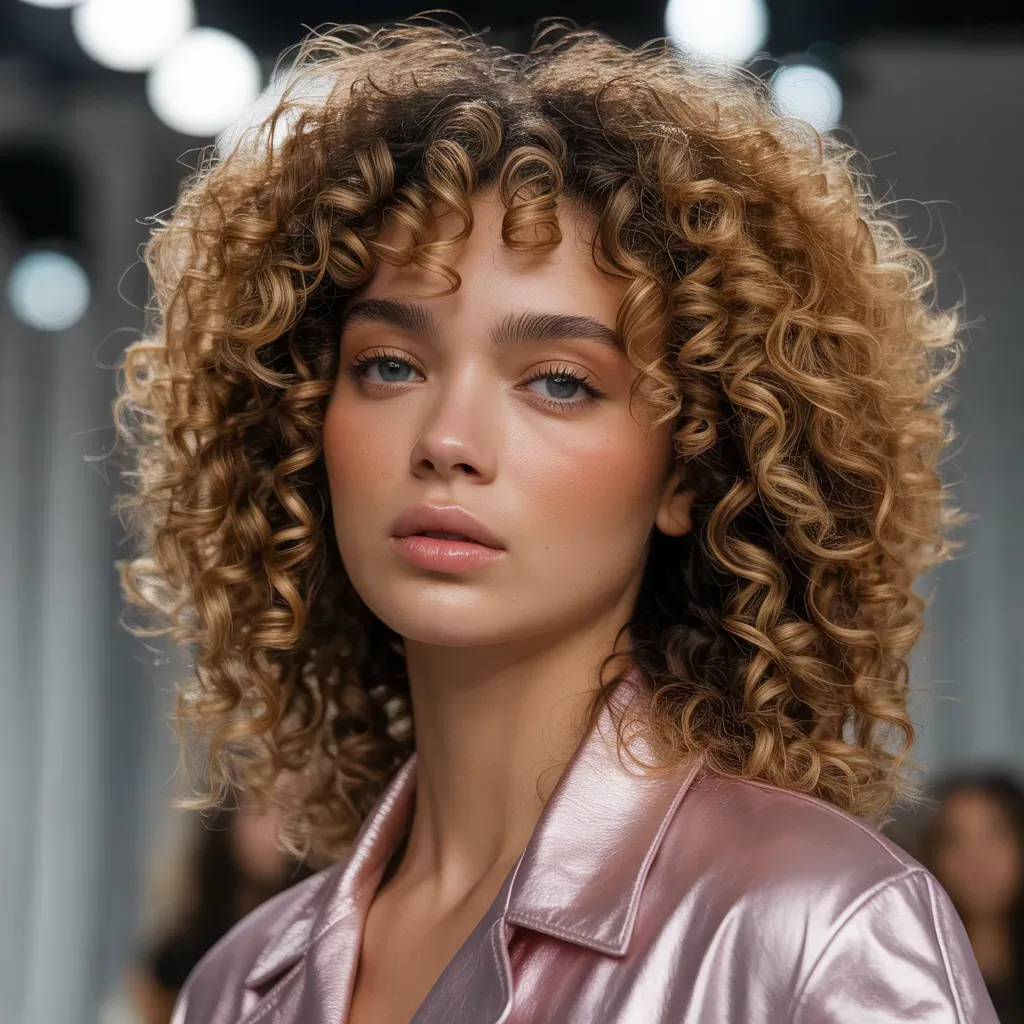 - Glowy, natural makeup: dewy foundation, soft brows, flushed cheeks, and a gloss—perfect for daytime curls.