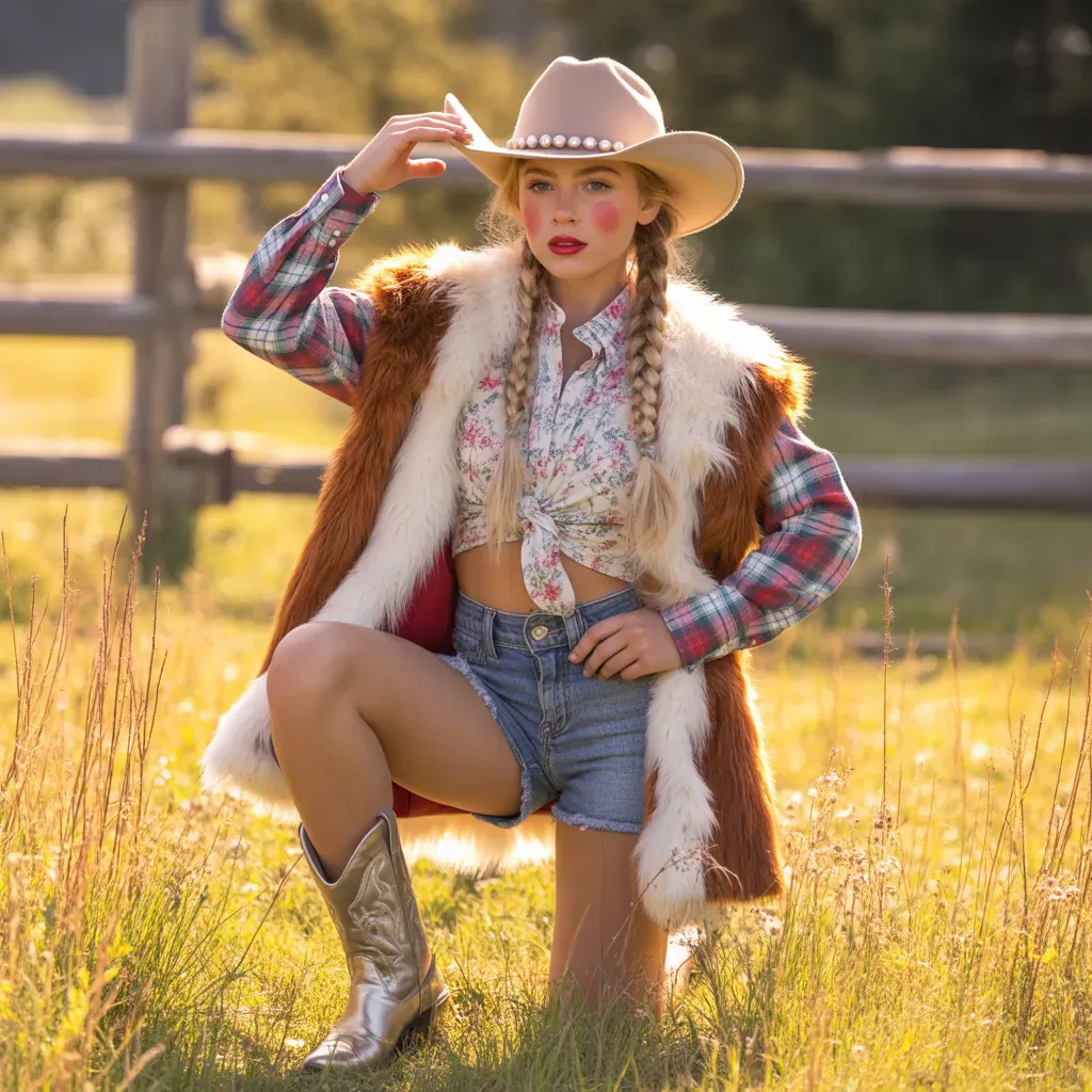 The cowgirl aesthetic blends timeless staples — denim, leather, boots, bandanas — with modern silhouettes and feminine touches. It’s adaptable: swap fabrics, colors, and layers, and a cowgirl outfit becomes suitable for any season. The key is balance: mix rugged pieces (like a classic western boot) with soft textures (lace tops, knit cardigans) to keep the look polished and versatile.