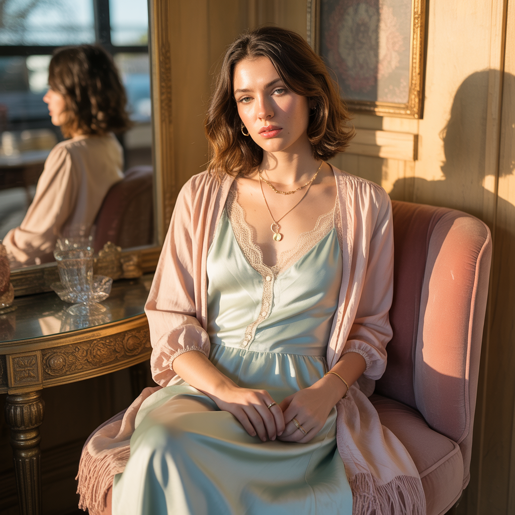 - For a romantic evening, wear a satin slip dress with a cropped, fitted cardigan. Add heels and statement earrings to elevate the look.