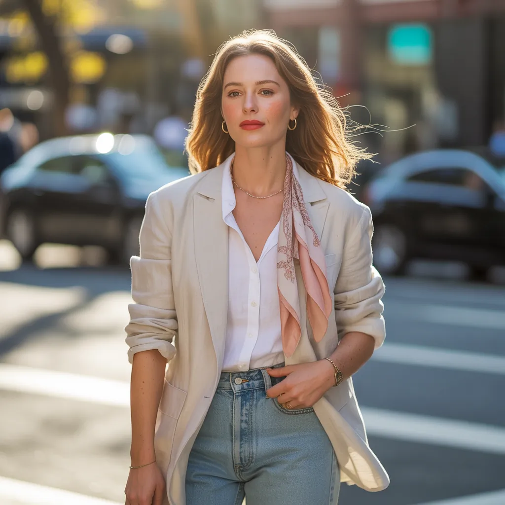 - Accessories: crossbody bag, simple hoops, a silk scarf