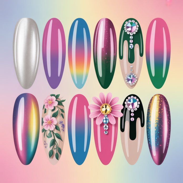 Why it works: Statement-making for evenings, parties, or creative projects. Try chrome, metallics, or dark matte shades to complement edgy looks.