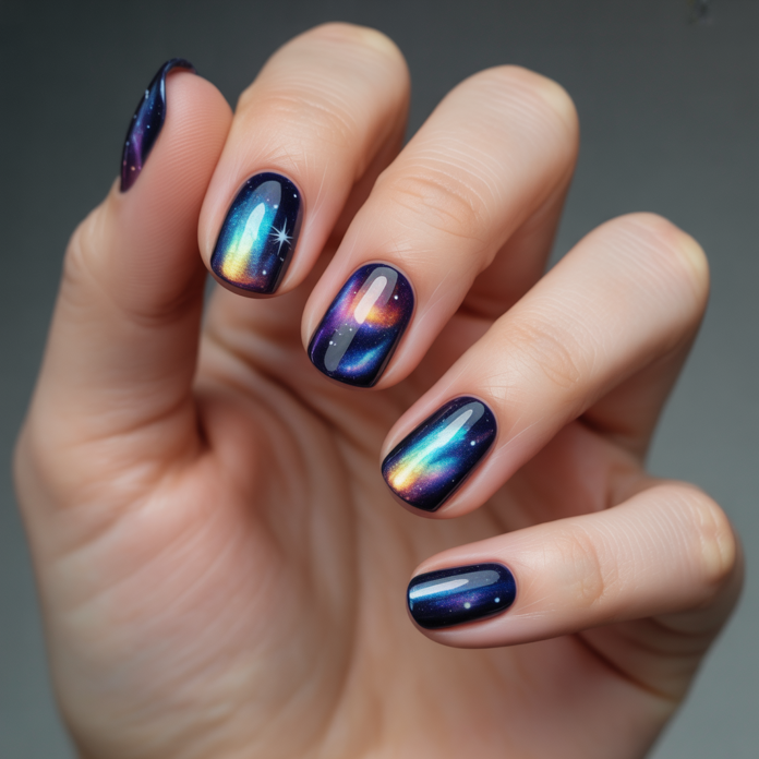 Yes — galaxy nail art looks fantastic on short nails. Use scaled-down nebula patterns and fine star details to avoid overcrowding the nail. Matte topcoats can also give a sophisticated, understated finish for daytime wear.