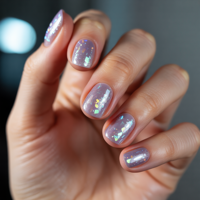- If you prefer subtlety: go for a sheer base with fine holo particles or glitter French tips.
