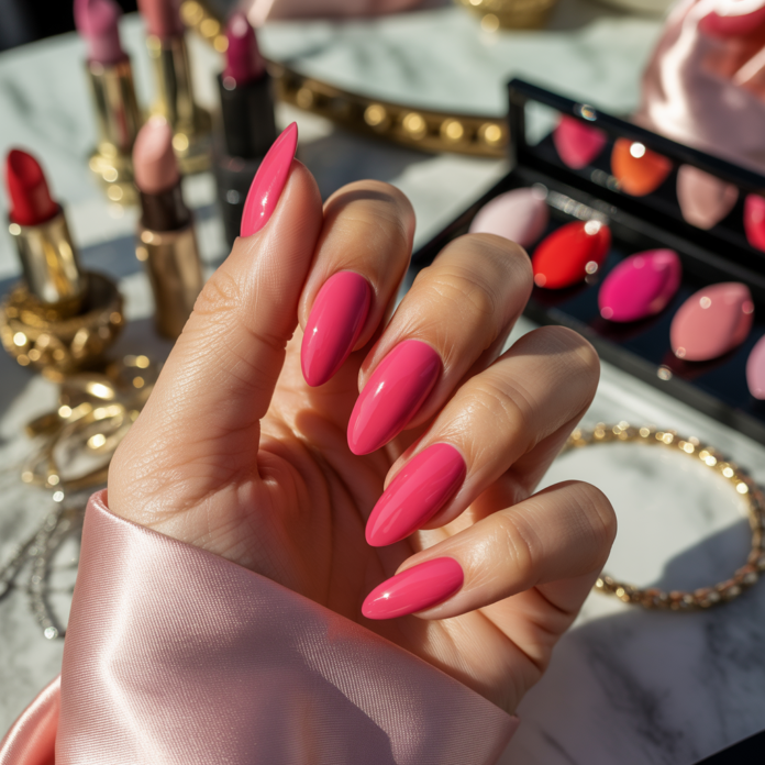 Hot pink is versatile: square and almond shapes suit work-friendly styles, while stiletto or coffin nails amplify drama for nights out. Choose what fits your lifestyle and comfort.