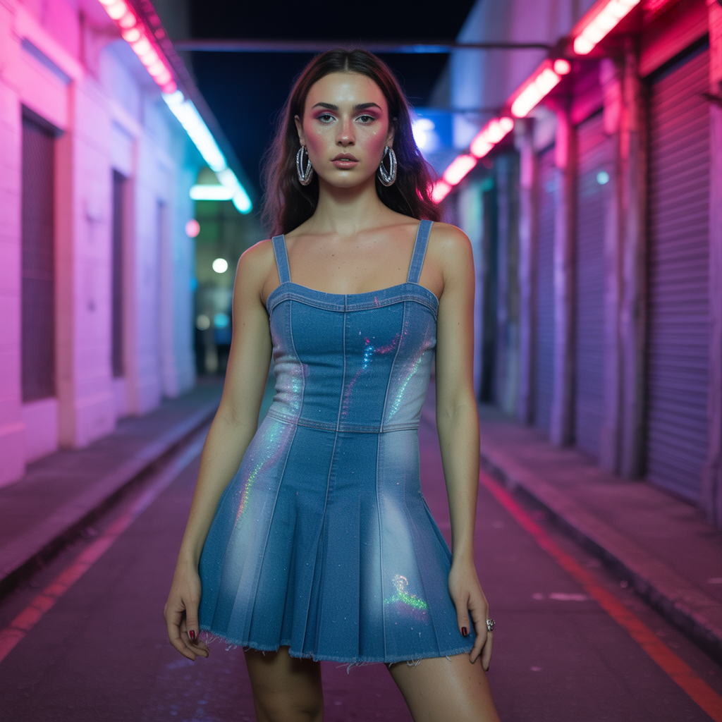 - Keep proportions in mind: if the dress is long, balance with cropped jeans or a high slit. If the dress is short, choose thicker denim to avoid awkward bunching.
