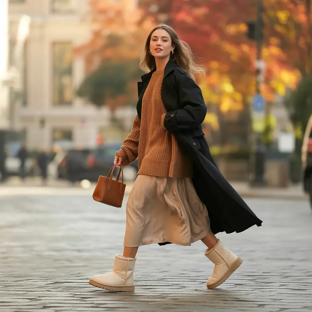 - Proportion is everything — balance the softness of UGGs with structured coats or fitted bottoms.