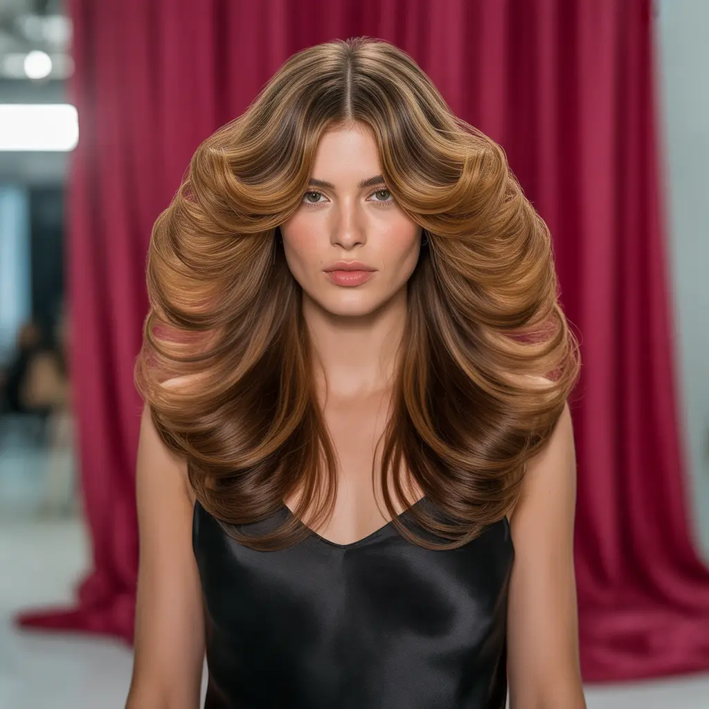 When your hair has movement and volume, balance the overall look with glowing skin and well-defined brows. A strong hairstyle pairs well with either a natural dewy base or a bold lip — pick one focal point to keep your look polished.