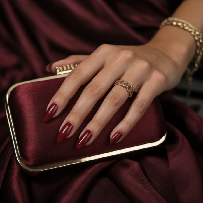 - Matte maroon nails: Slightly edgy and modern — great with gold accessories.