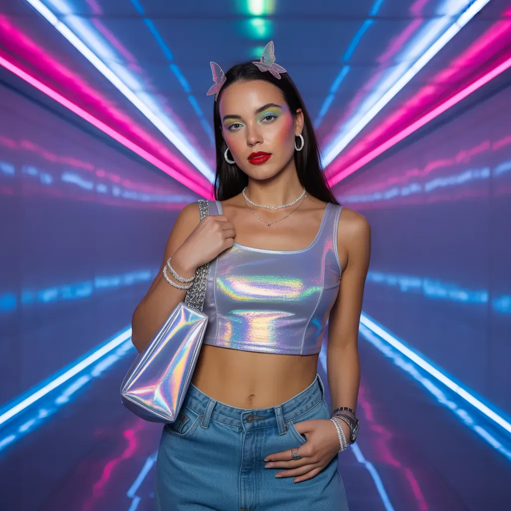 Accessories make the era. Think micro shoulder bags, chunky chain necklaces, butterfly clips, and tiny sunglasses. Here’s how to use them without overdoing it: