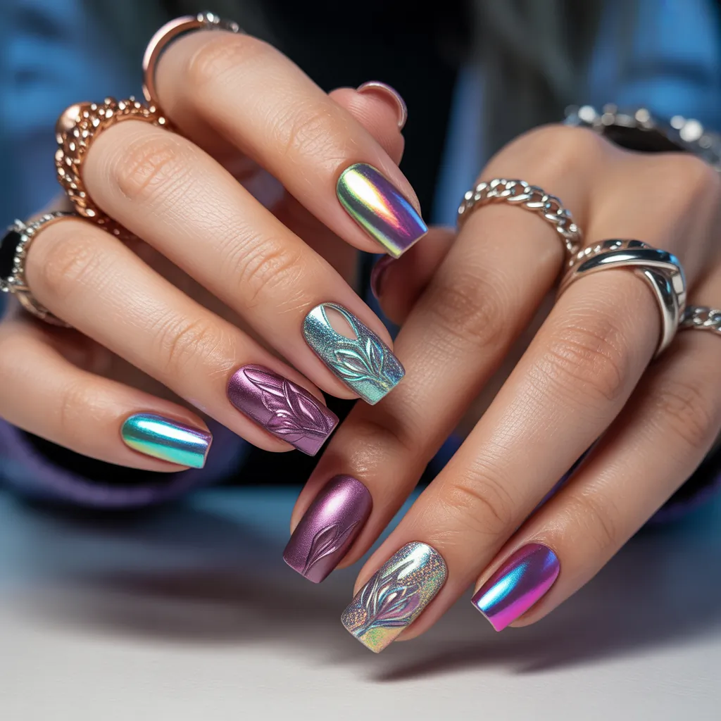 Subtle texture—matte-satin combos, pearlescent sheens, and micro-embellishments—adds depth without looking overdone. Tiny studs or single pearl accents on an accent nail are more wearable than full bling.