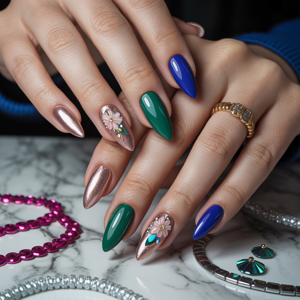 - Smoky eye + metallic accent nail: Complement a dramatic eye with a single chrome or gold accent.