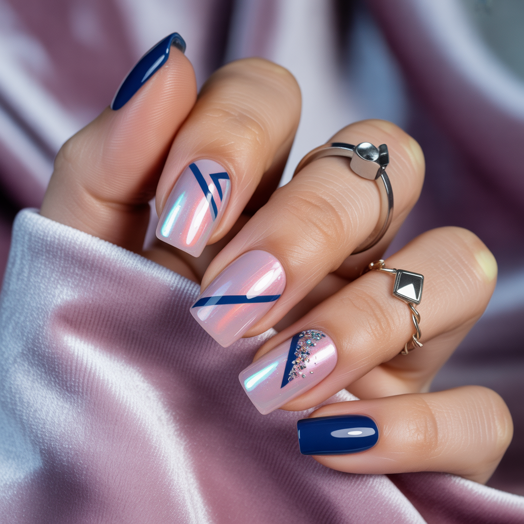 - Office: Short square nails in neutral hues + tailored blazer + silk blouse.