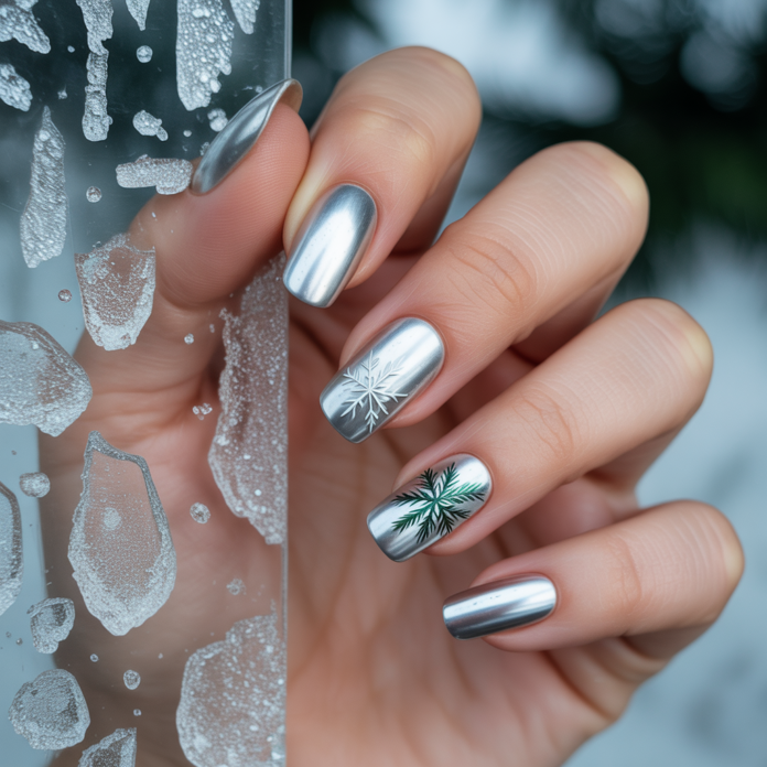 - Snowflake & Glitter Accents – delicate white snowflakes on a sheer or deep base with a hint of glitter for sparkle.