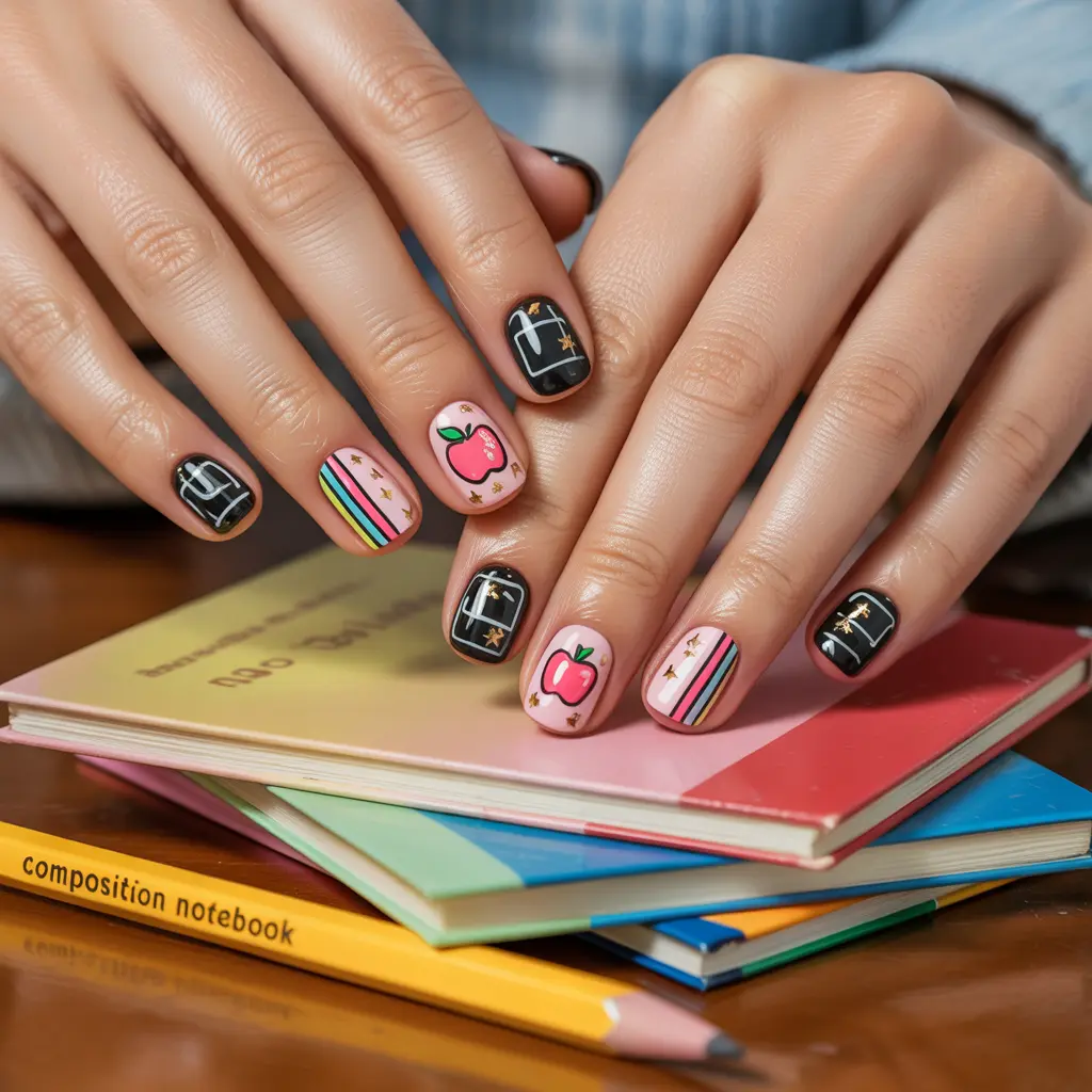 Short to medium nails are ideal for school since they’re easier to maintain, less likely to break, and practical for writing and other daily tasks.
