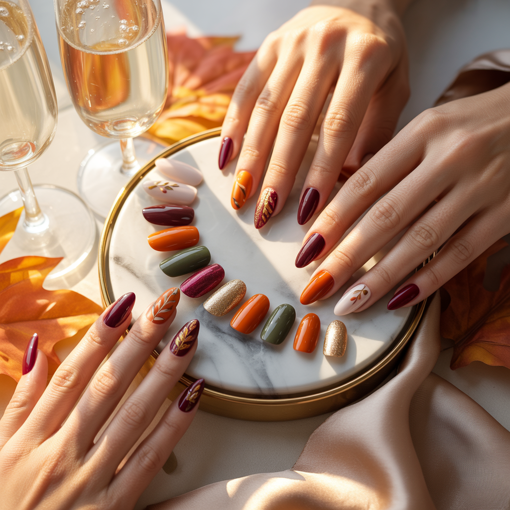 A: Absolutely. Choose complementary tones rather than exact matches—e.g., a warm rust nails with a brown leather jacket, or a deep green nail with neutral accessories. Small accents like a leaf or gold fleck can connect your manicure to your outfit subtly.