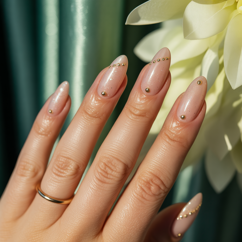 - Almond nails with glitter: Accent a single nail with gold or rose-gold glitter for a subtle sparkle.