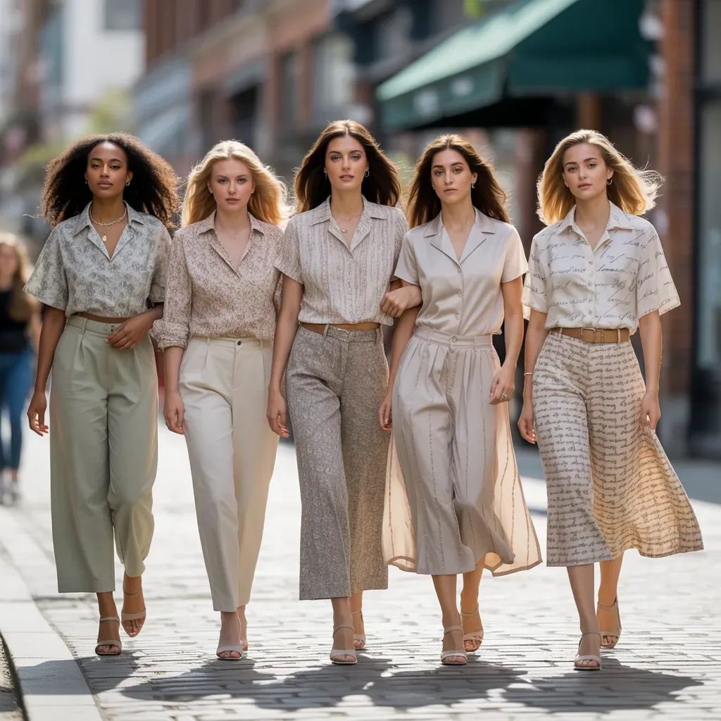 Choose accessories that echo the print’s color palette. Matte metals often work better than shiny ones with subtle patterns. For shoes, neutral loafers, block heels, or simple sneakers maintain a refined silhouette. Printed accessories (scarves, belts, clutches) are an easy way to introduce pattern without committing to garments.