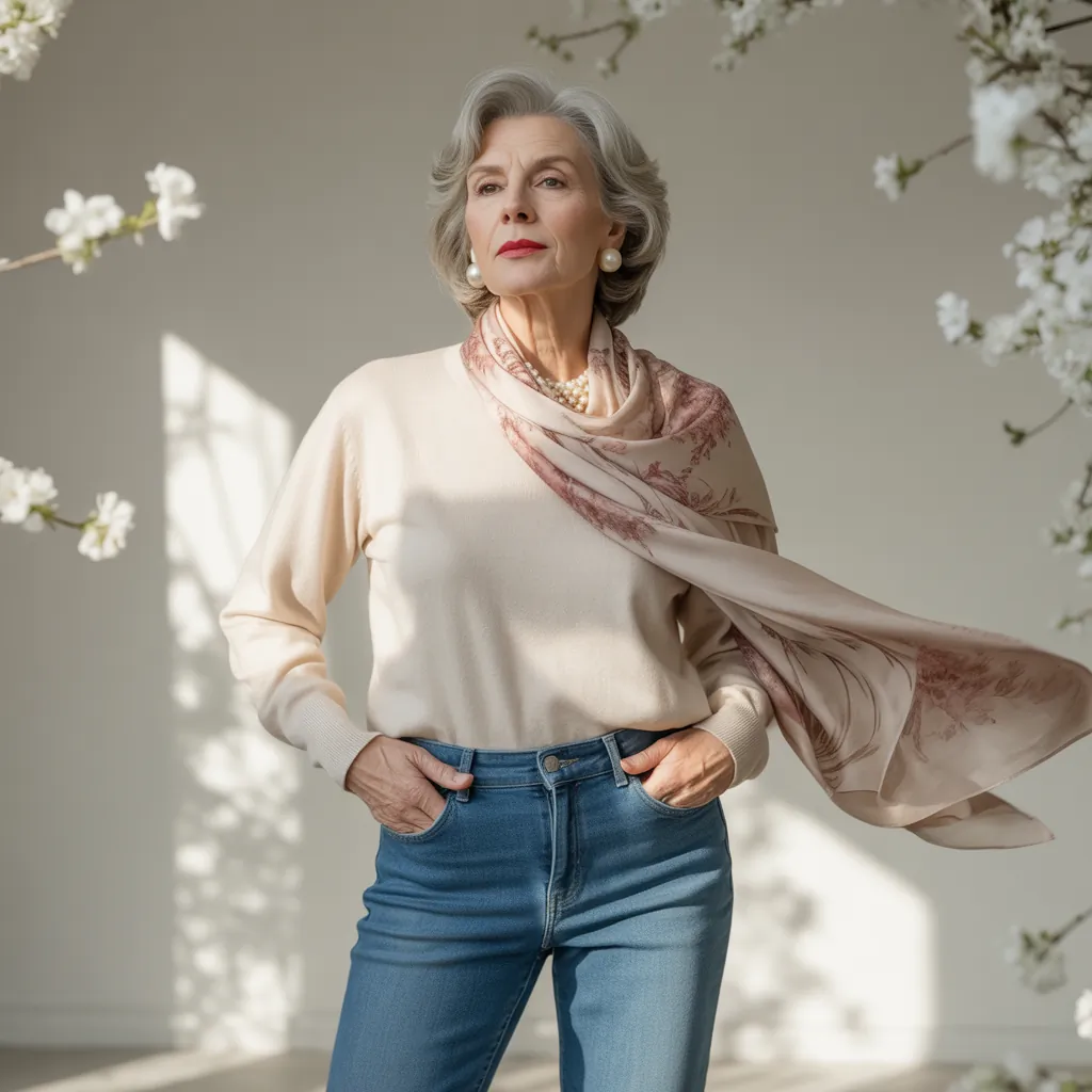 Pair straight-leg senior jeans with a soft knit sweater, loafers, and a structured tote. Add a silk scarf or a long pendant necklace to elevate the look without effort.