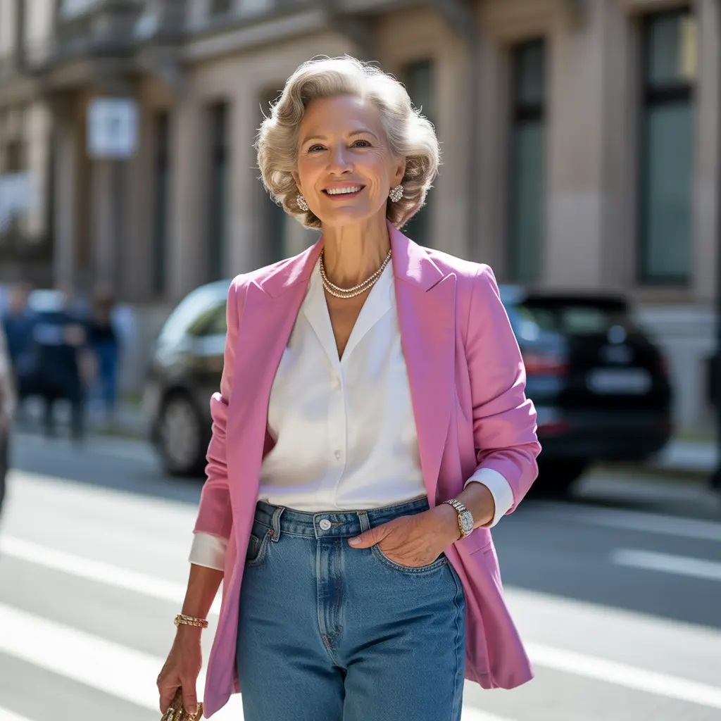 Senior jeans can work wonders for a night out when styled with a silky tunic, a chic jacket, and heeled boots or sandals. A bold red lip and softly defined eye makeup add an instant glam factor without feeling overdone.
