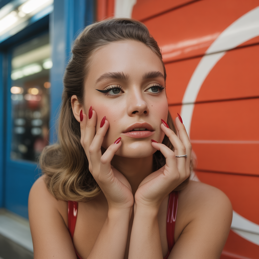 - Eyes: Winged liquid liner is a must — keep the wing crisp and elongated. Add individual false lashes at the outer corners for a modern lift.