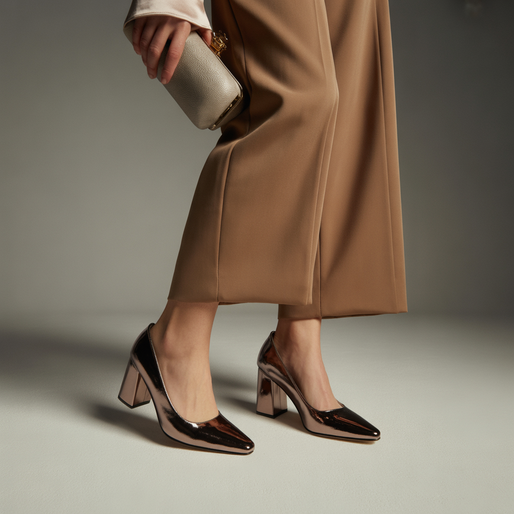 - Heels or pumps: classic cat-eye and a luminous matte base for elegance.