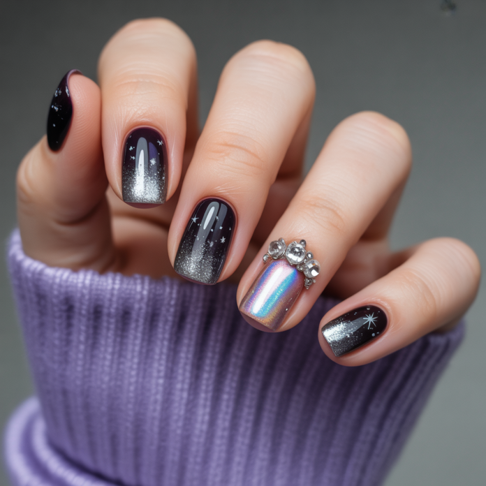 - Galaxy gradient: deep navy to purple with micro-glitter for a celestial vibe.