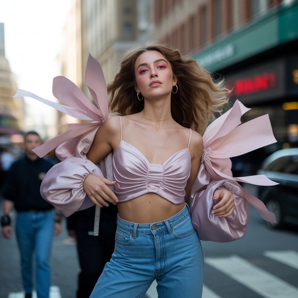 - Why it works: A statement sleeve or bold print elevates classic denim.