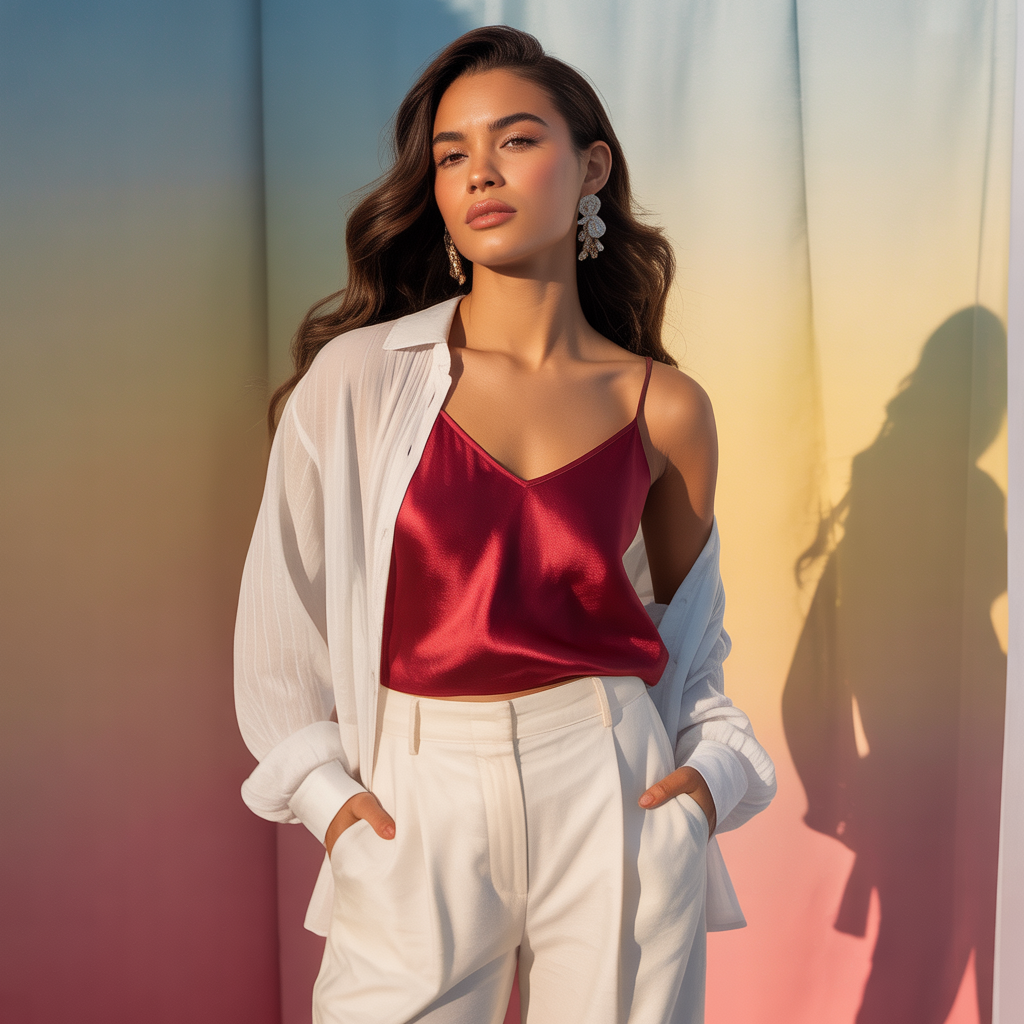 For evening looks, silk camisoles and blouses with interesting sleeves pair beautifully with the fluidity of wide legs. Add a delicate necklace and a heel to strike the right balance between femininity and edge.