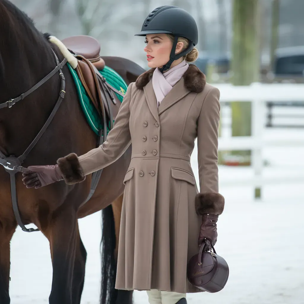 - Smart lesson or clinic: Moisture-wicking base + fitted turtleneck + tailored show jacket (or a close-fitting winter coat) + lined breeches + tall boots. Keep outerwear trim to preserve mobility.